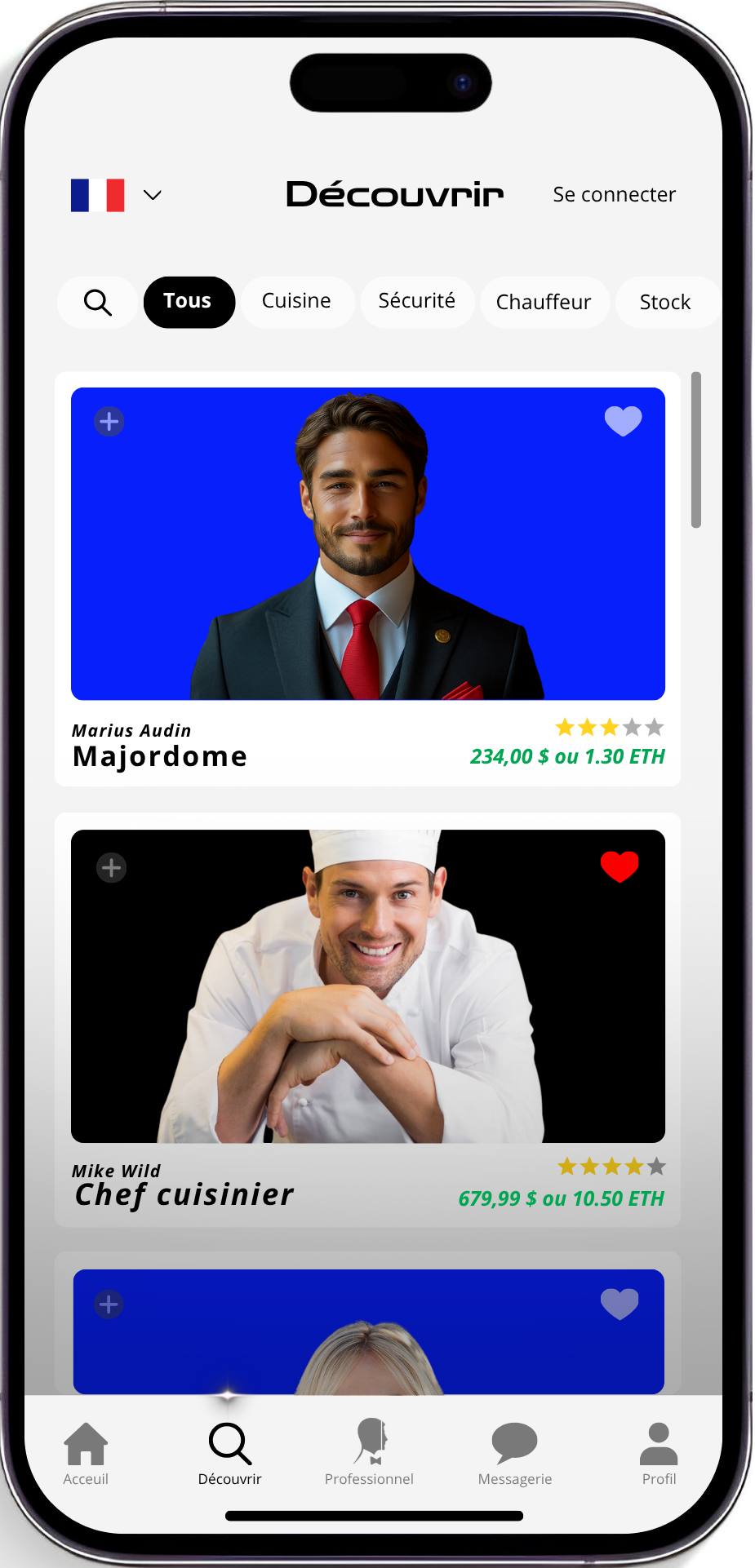 Créer une plateforme mobile et web haut de gamme mettant en relation une clientèle aisée avec des professionnels du service personnel (majordomes, concierges, chefs privés, chauffeurs, gouvernantes, assistants personnels, chefs cuisinier, house manager, coach, skipper, jardinier, secrétaire, agent de sécurité).